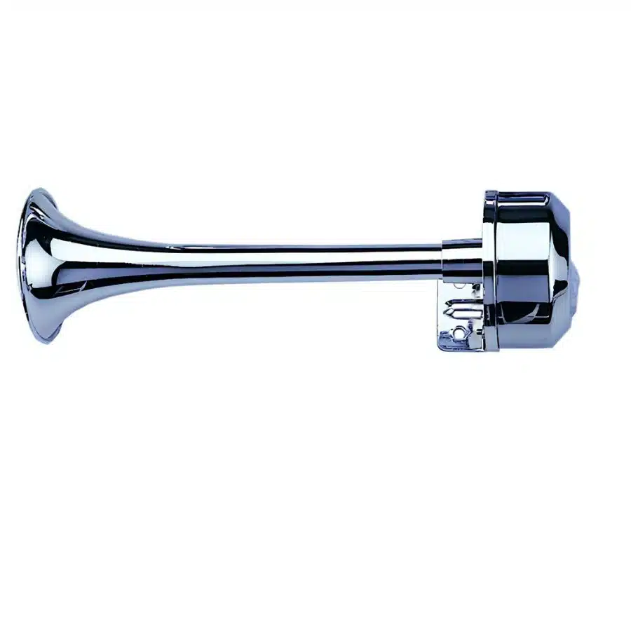 Ηλεκτρομαγνητική κόρνα τύπου χωνί, κατασκευασμένη από ανοξείδωτο χάλυβα (INOX), ιδανική για σκάφη μικρού και μεσαίου μεγέθους. Παρέχει υψηλής έντασης ηχητικό σήμα, με καθαρό και διαπεραστικό ήχο, κατάλληλο για χρήση σε θαλάσσια περιβάλλοντα.