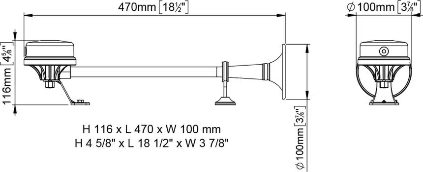 Μονή ηλεκτρομαγνητική κόρνα υψηλής απόδοσης, σχεδιασμένη για χρήση σε θαλάσσια περιβάλλοντα. Διαθέτει τρομπέτα κατασκευασμένη από ανοξείδωτο χάλυβα (INOX), εξασφαλίζοντας εξαιρετική αντοχή στη διάβρωση και μεγάλη διάρκεια ζωής ακόμα και σε δύσκολες συνθήκες.